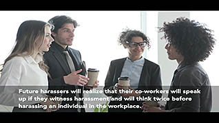Bystander intervention is a critical component of harassment prevention. This video training explores bystander intervention to support victims and stop harassment in the workplace. This training explores how a bystander should intervene when they witness harassment. Viewers learn how to create a culture intolerant of harassment. This training shows examples of how to intervene in a non-threatening manner. Use this video to educate employees about appropriate ways for bystander intervention.